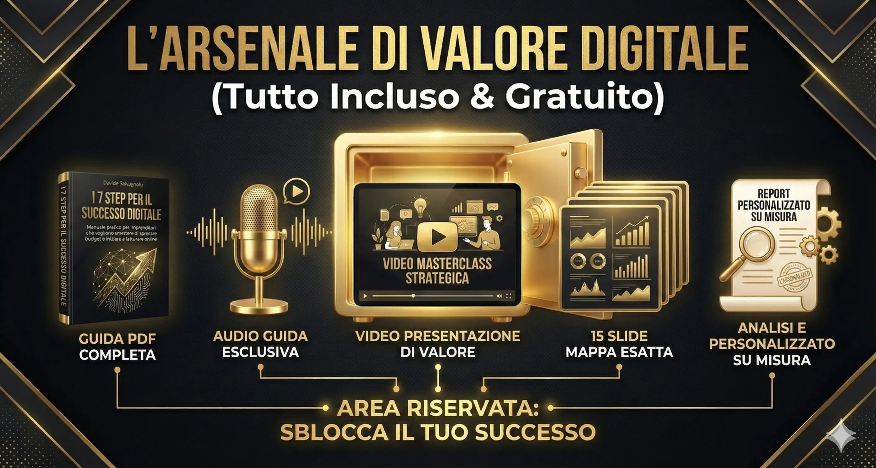 📘 Il Manuale Pratico (PDF): "I 7 Step per il Successo Digitale". Niente teoria universitaria, solo pratica per PMI.