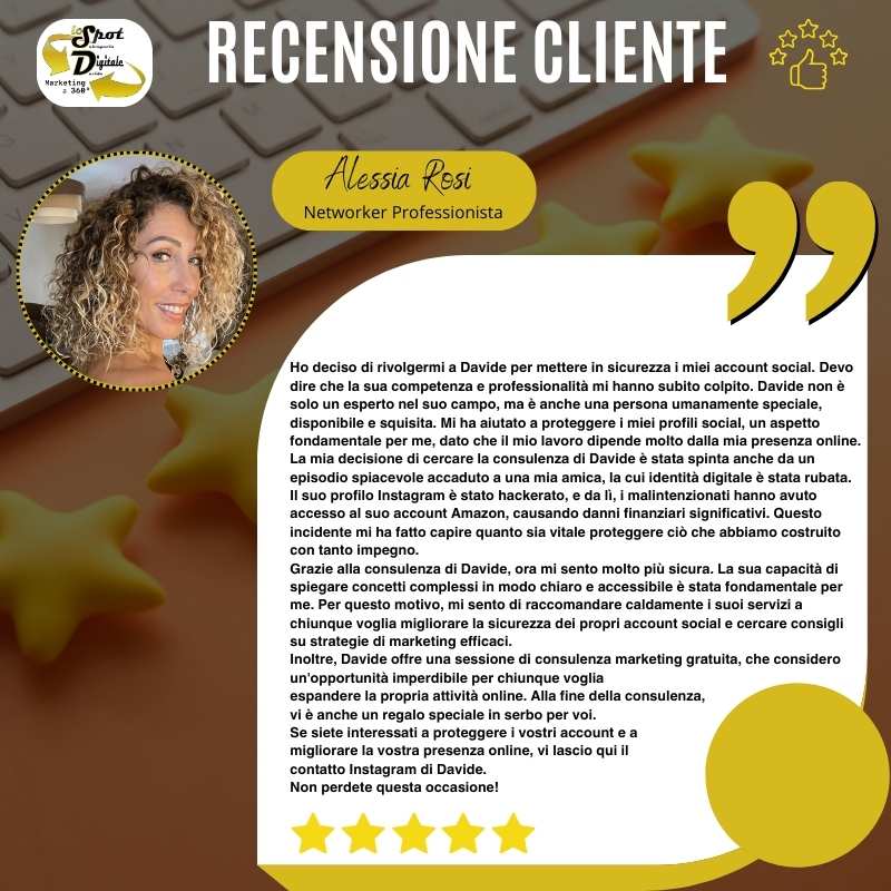 Non propongo pacchetti preconfezionati, ma strategie uniche e studiate nei minimi dettagli per valorizzare i punti di forza di ogni attività. Non sono un semplice fornitore di servizi, ma un vero alleato per il tuo successo, sempre al tuo fianco per trasformare le sfide in opportunità.