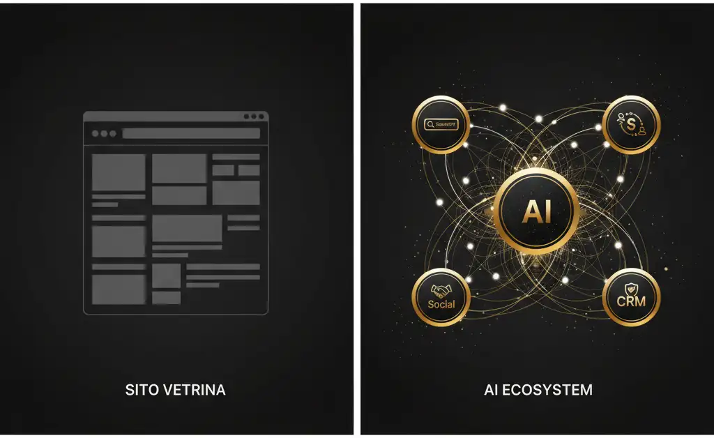 Siamo nel 2026 e, se stai ancora misurando il successo della tua azienda in base alle 'visite al sito', ho una notizia dura da darti: stai guardando nello specchietto retrovisore mentre il mercato corre verso un dirupo. Il concetto di sito web come catalogo statico è ufficialmente defunto. Oggi, l'imprenditore che vince non è quello che ha il sito più bello, ma quello che ha saputo iniettare il proprio DNA commerciale in un sistema di Intelligenza Artificiale capace di vendere, assistere e convertire h24.